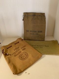 Description: Jackson bank bags (4) and eye glasses (1) & cases (2) with Jackson store names;