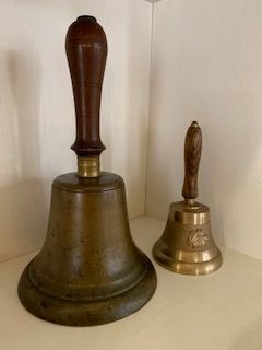 .100 very large and heavy one-room schoolhouse bell used by Oma Handley Dando, a former teacher in a one-room schoolhouse, oldest aunt of Jack Handley;