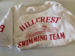 Description: Hillcrest Swimming Team sweatshirt. Short sleeved, white with red text. Number 9 on sleeve.