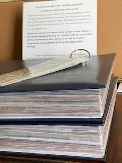 Description: Two-volume scrapbook set featuring Scurlock Family military history compiled by Helen Cott. These two volumes contain the names and photographs of many veterans of the Revolutionary War, War of 1812, Civil War, Spanish-American War, World War I and II, Korean Conflict, Vietnam, Persian Gulf War and recent wars in Iraq and Afghanistan.