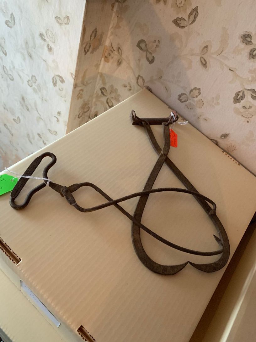 Description: black, iron, ice block holder and pick, Quality Server brand;