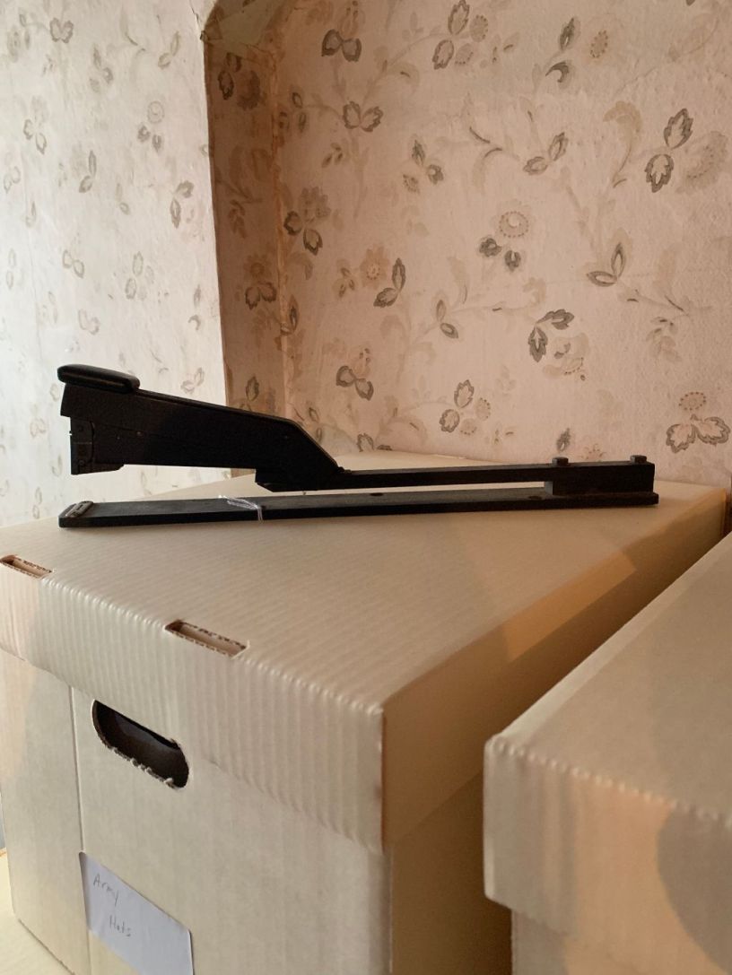 Description: black, iron stapler;