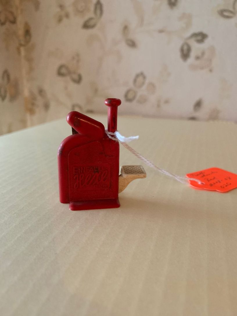 Description: red metal needle threader, Einfacel brand.