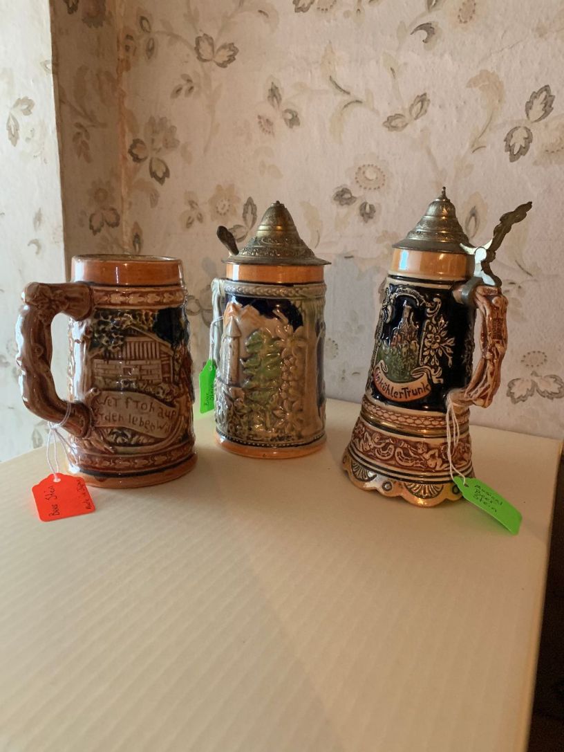 Description: Three beer steins;
