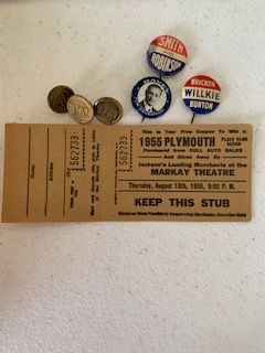 .106 ticket stub, Markay Theatre for a drawing of a 1955 Plymouth;