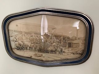 Description: framed b/w photo of JISCO Furnace and employees, framing includes original curved glass. Peggy Lanier’s grandfather George Richards worked at JISCO and picture belonged to him. George Richards died in 1957 and lived in Coalton,Ohio. “He carried a pack lunch every day prepared by our grandmother Ellie (Mary Ellen?).