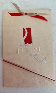 Description: 1929 commencement exercises announcement/invitation for Jackson High School, Thursday, May 23 at 8 p.m. held at the Eisteddfod Building, name card of Virginia Smith, booklet contains commence program with all names of participants, third page includes class colors, flower, motto, and names of all graduates.