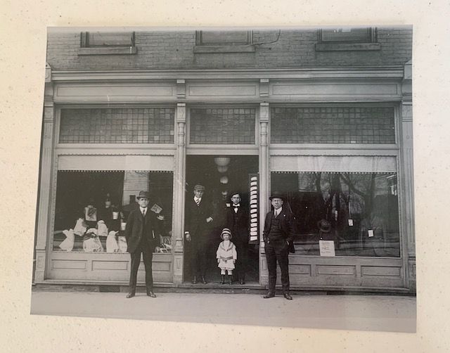 Description: scanned copy of photograph provided by daughter, store address was 223 W. Main St. Jackson, Ohio; men identified by donor as LtoR Cranstan Claar, unknown, Edward W. Claar, Burt Nichols, Rip Claar.