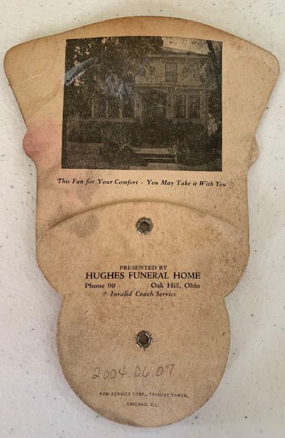Description: promotional fan for Hughes Funeral Home, Oak Hill, Ohio, with front cover full-color depiction of the Last Supper.