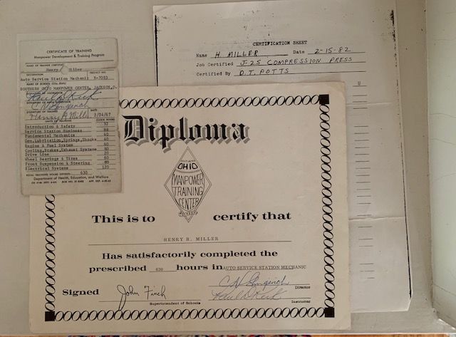 .084 Certificate of Training for Manpower Development and Training Program, Henry Miller, 2/24/67.