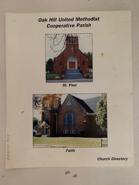 Description: paperbound color church directory for Oak Hill United Methodist Cooperative Parish of St. Paul and Faith churches, no date, color photographs of members of each church with names and addresses.