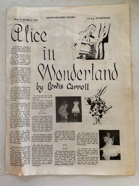 Description: Alice in Wonderland Jackson HS play program, March 31 & April 1, 1978;