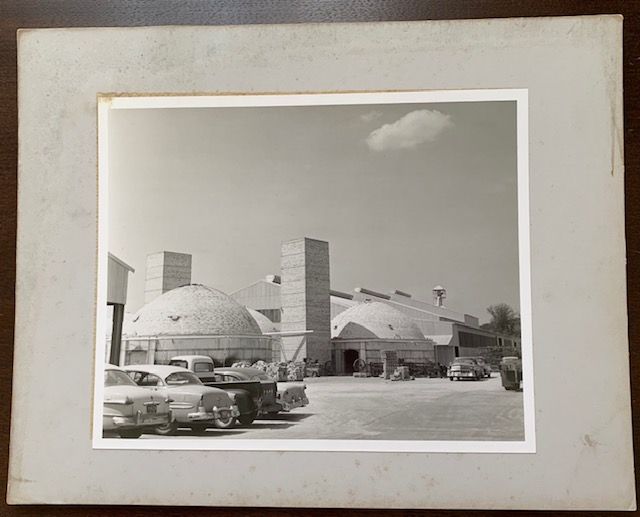 Description: b/w photograph mounted on fiberboard, 1 of 9 photographs donated together, mounted in same manner; pictured is a brickyard, potentially Durex Refractories Co., on Beaver Pike Road in Jackson as referenced in 1957 telephone directory.