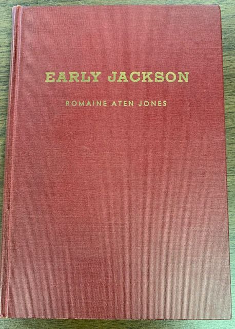 Description: hardbound book (roughly 8 inches x 5 inches), Early Jackson, with red cover and gold text by Romaine Aten Jones (1873-1963) of Jackson, published in 1942. In the author’s words,”This little book is the outgrowth of a manuscript originally prepared for the Women’s Literary Club of Jackson, Ohio. That organization was very gracious in its reception of the paper. Since that time, many friends have volunteered additional and interesting information, an the author hopes this second effort will be as generously received. Though making no claim to literary excellency, she has sought at all times to attain historical accuracy.