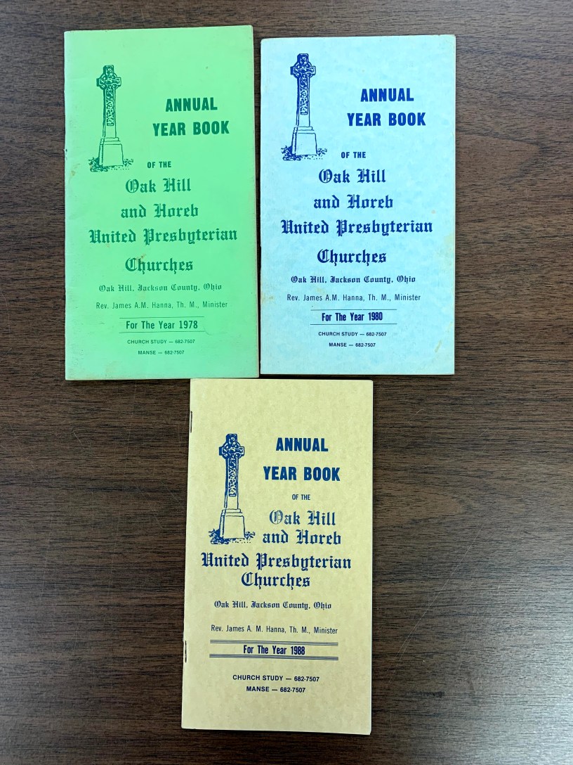 Description: small, paperback, annual yearbooks for Oak Hill and Horeb Presbyterian churches
