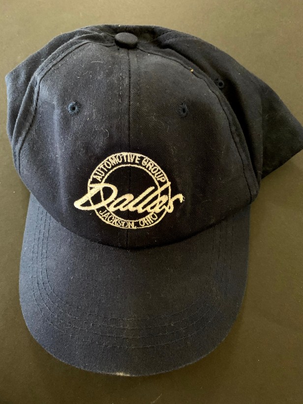 Description: navy blue cotton baseball cap embroidered in white with the logo Dallas Automotive Group Jackson Ohio, good condition but worn.