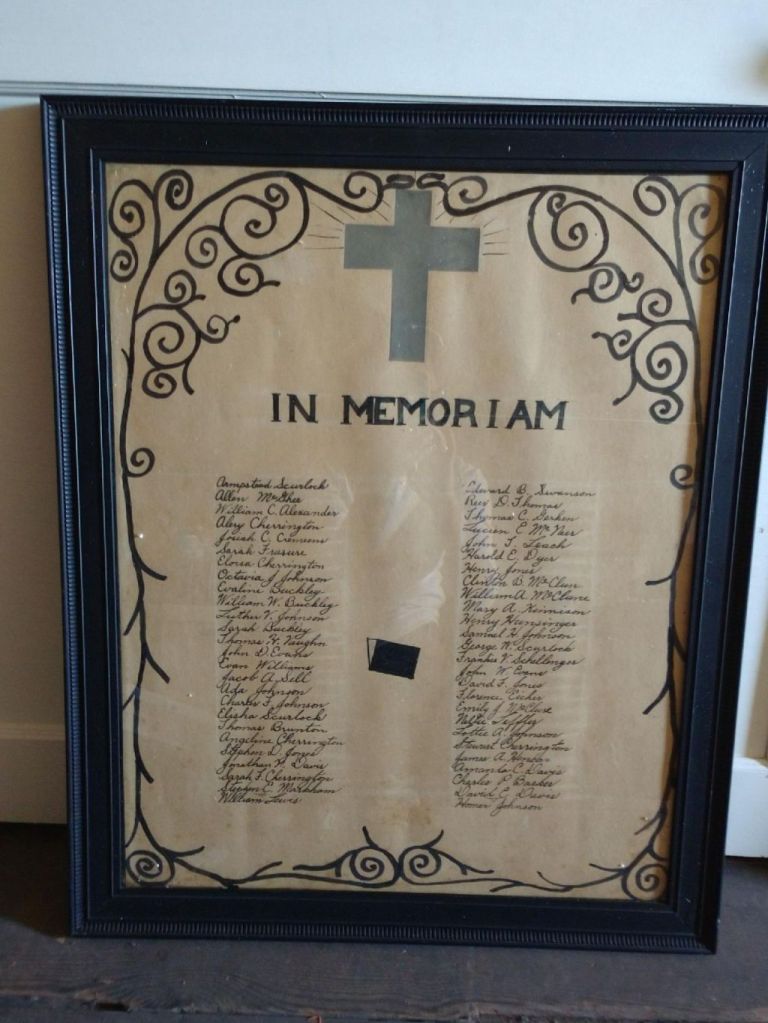 Description: Two memorial framed items from Valley Grange with names of deceased members,