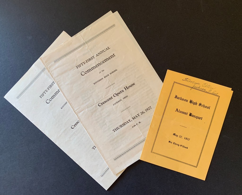.003: Fifty-first annual commencement of Kinnison High School, held at the Crescent Opera House in Jackson OH, May 26,1927, all graduates listed with full names, Board of Education members listed, teachers listed with subject classes taught. two copies of program.