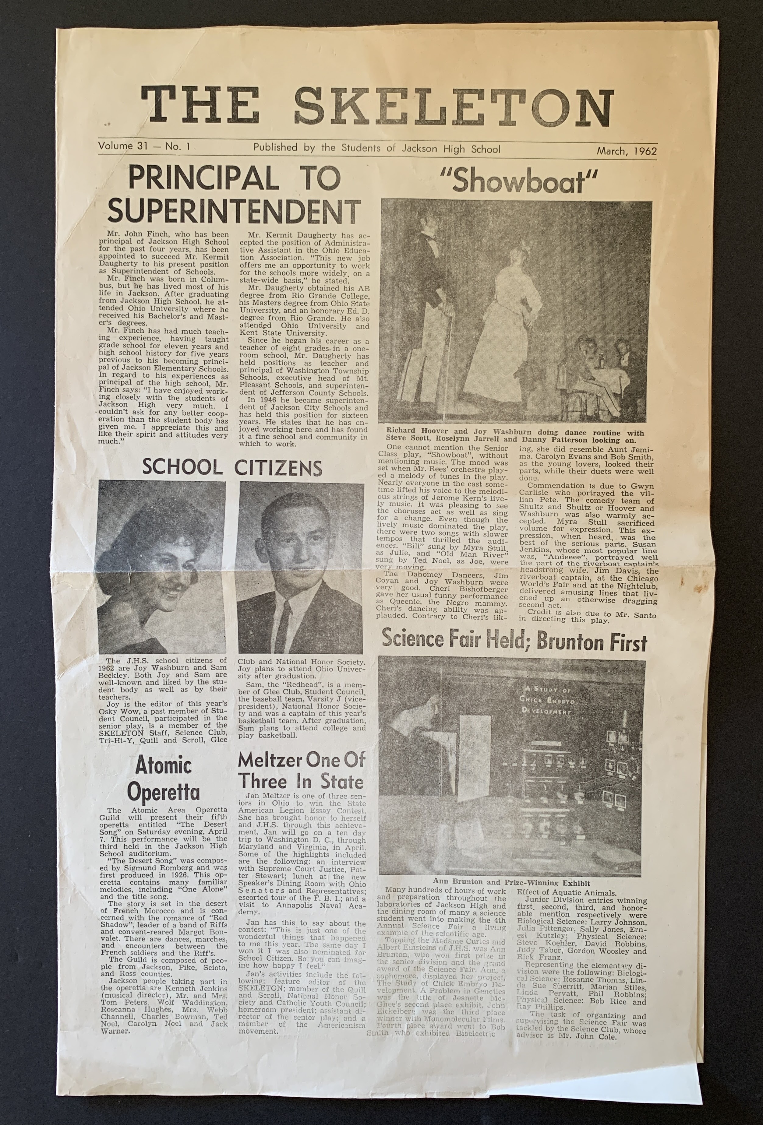 .001 March 1962, announcing John Finch promotion from JHS principal to Jackson City Schools superintendent along with other items of local news.