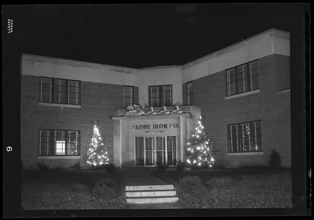 Description: two b/w film negatives, photographs of Globe Iron heaquarters taken by Metallurgist E. Sanford Keairns who also taught science at Jackson High School for a time.