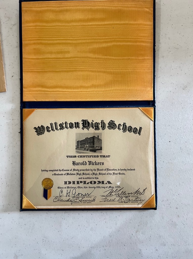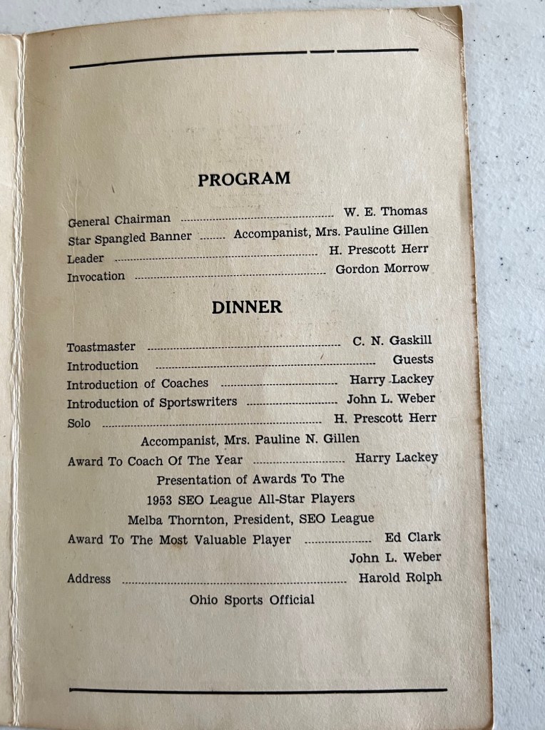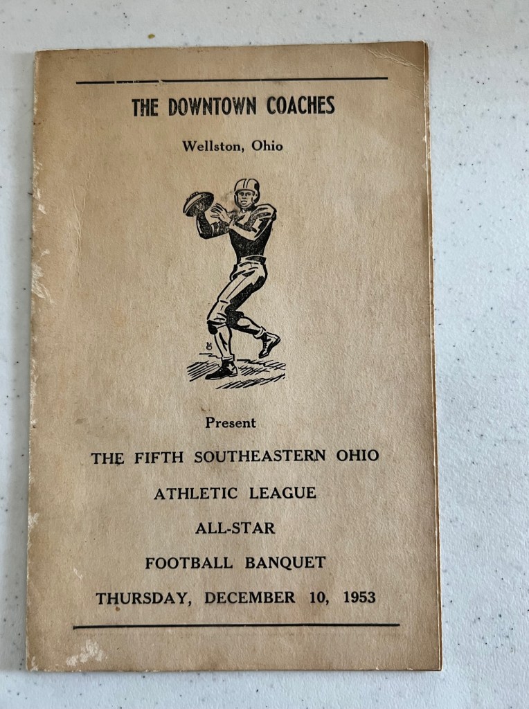 Description: A 1953 Southeastern Ohio Athletic League (SEOAL) All-Star football banquet program. A 1955 Wellston High School diploma with cover.