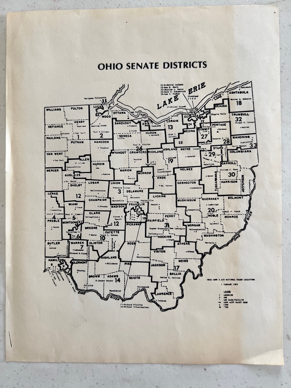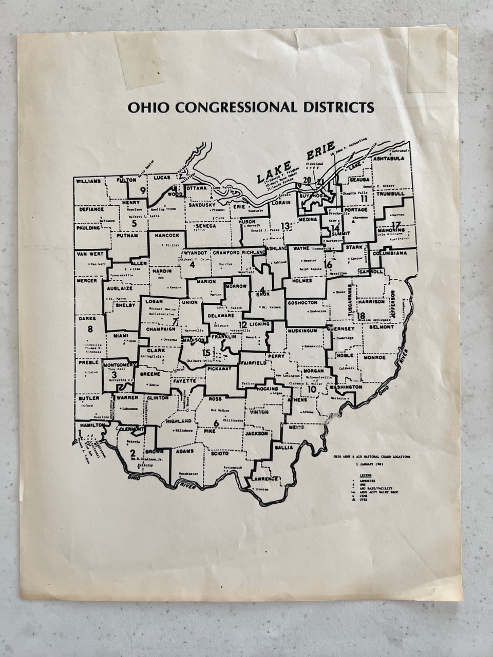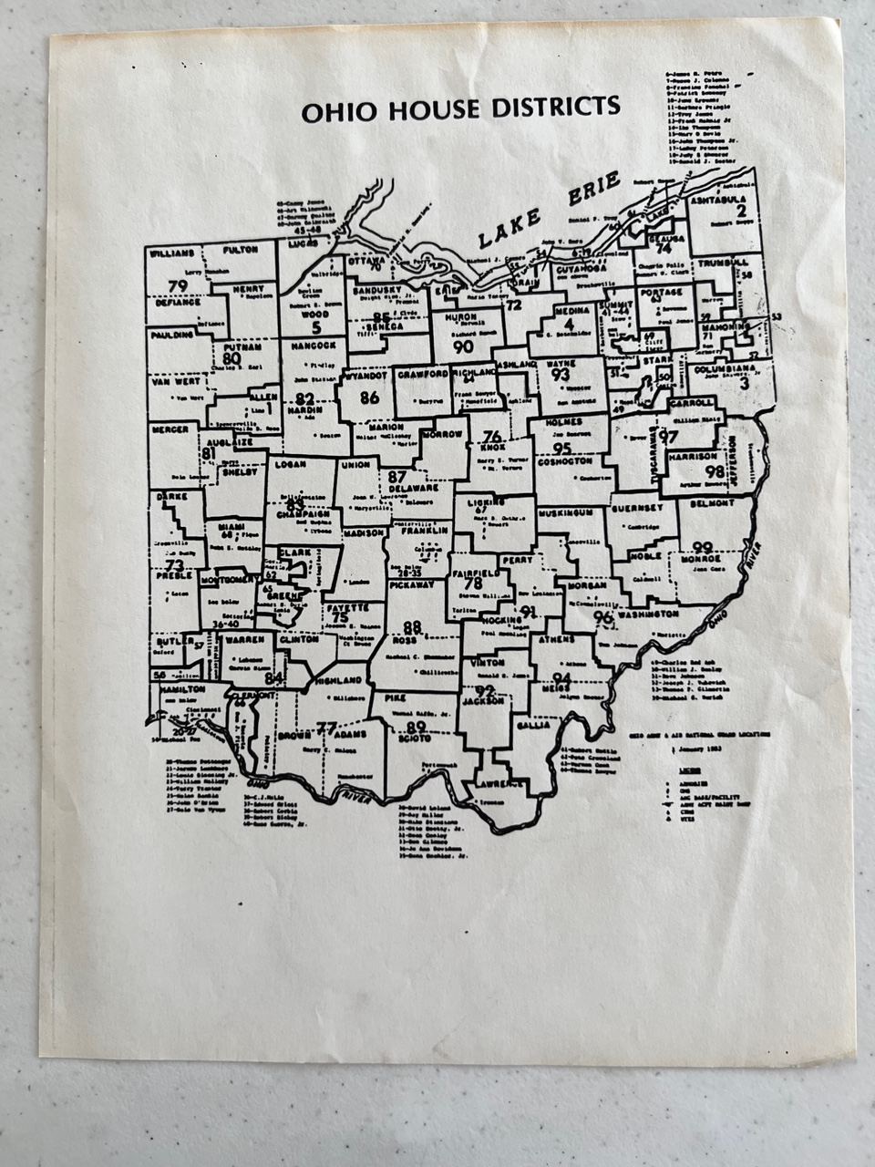Items: 0008: 1975 Wayne National Forest map; 0009: 1985 State of Ohio map; 0012: 1963 Ohio Congressional district map; 0013: 1963 Ohio Senate districts map; 0014: 1963 Ohio House districts map; 0036: 1999 National Park System Map.