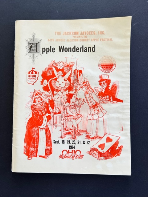 Description: The first picture is a clipping from the Journal-Herald showing the gateway to the 1st Apple Festival in 1937 as well as a blurb. The second picture is the cover of the 1980 Apple Festival program. The third picture is the cover of the 1984 Apple Festival program. The fourth picture is on business of apple orchards in Jackson County.
