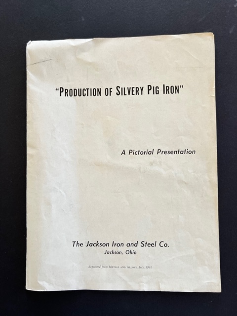 The second item is a reprint from the July 1941 issue of Metals and Alloys entitled “Production of Silvery Pig Iron”. This reprint features pictures and details of the production of pig iron at the plant of the Jackson Iron and Steel Company – commonly known as JISCO.