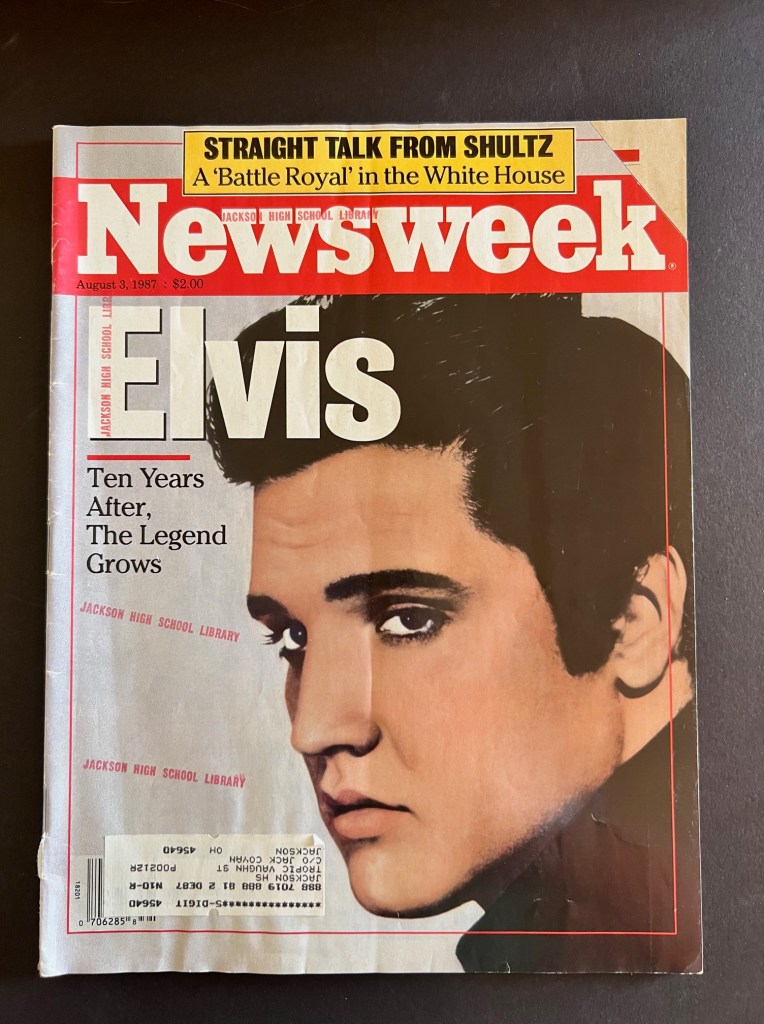 Description: The first item is a Newsweek from August 3rd, 1987 that features Elvis Presley ten years after his death.