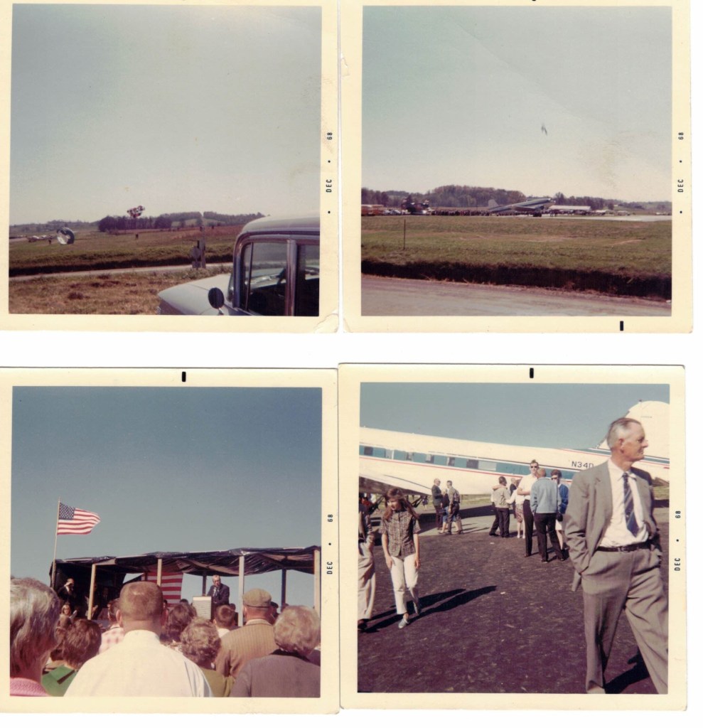 Description: These four pictures show the dedication and opening of the James A. Rhodes Airport in Jackson Ohio in the Fall of 1968. Gov. Rhodes was present for the dedication and is pictured speaking to the crows in the bottom left picture.