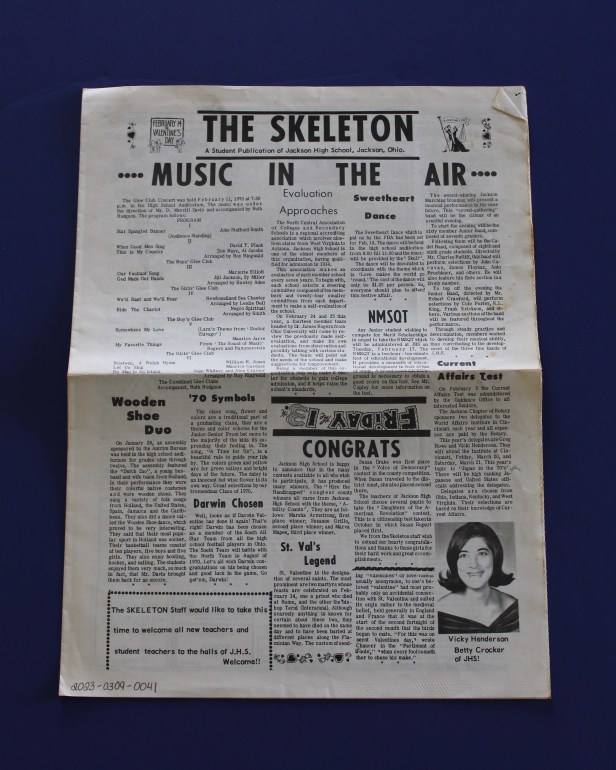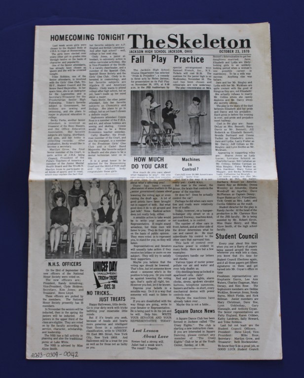 Description: A collection of issues of The Skeleton from 1970 – 1971. The Skeleton is the student newspaper at Jackson High School.