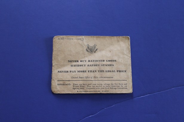 Items: 0003: A World War II ration book four with stamps; 0004: A World War II ration book two.
