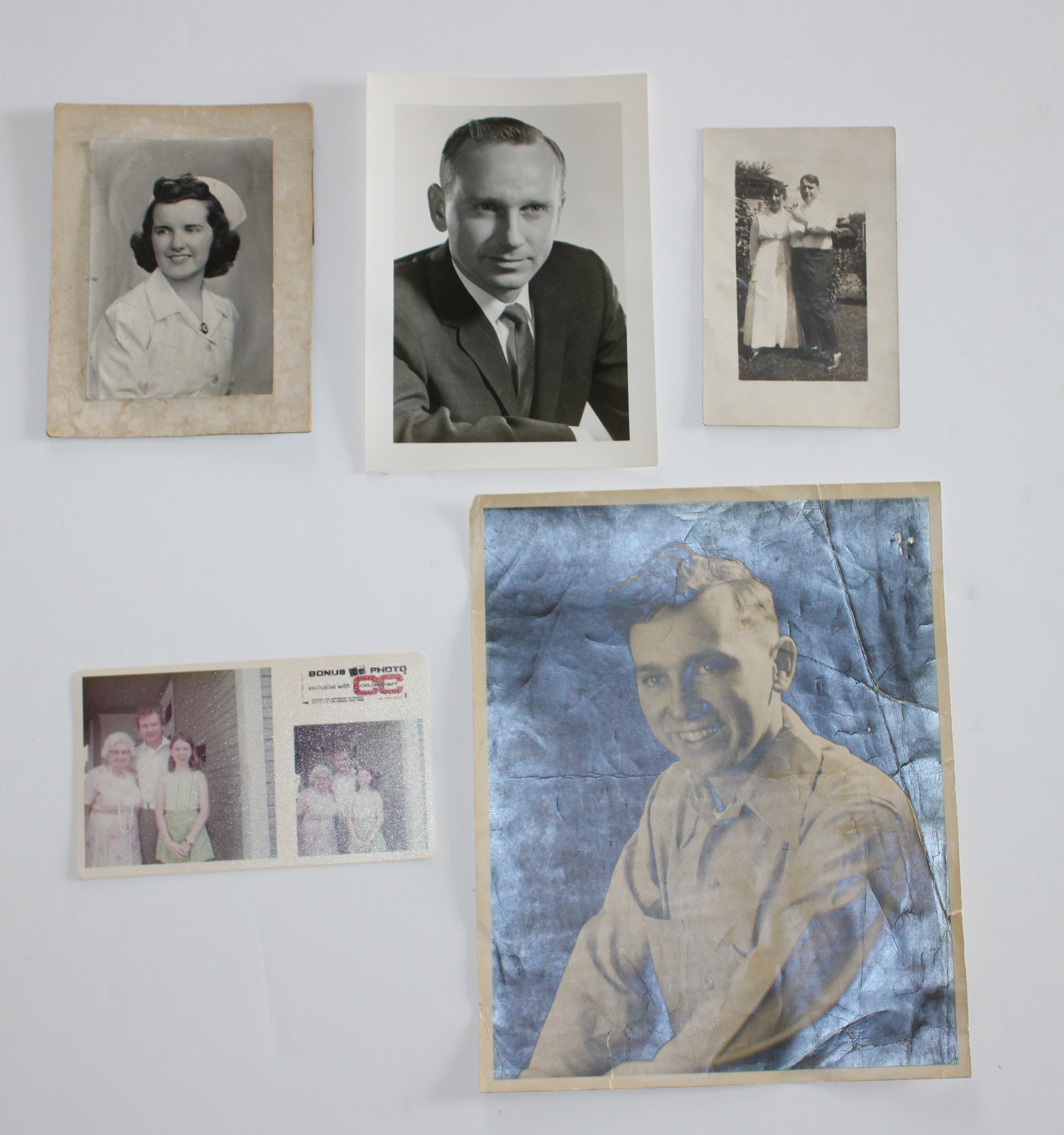 Items: 0003: Clark Family wedding photo; 0004: Clark family photo featuring an older woman, a man, and a younger girl; 0005: Clark family photo featuring a nurse; 0006: Clark family photo featuring a middle-aged man; 0007: Clark family photo featuring a young man.